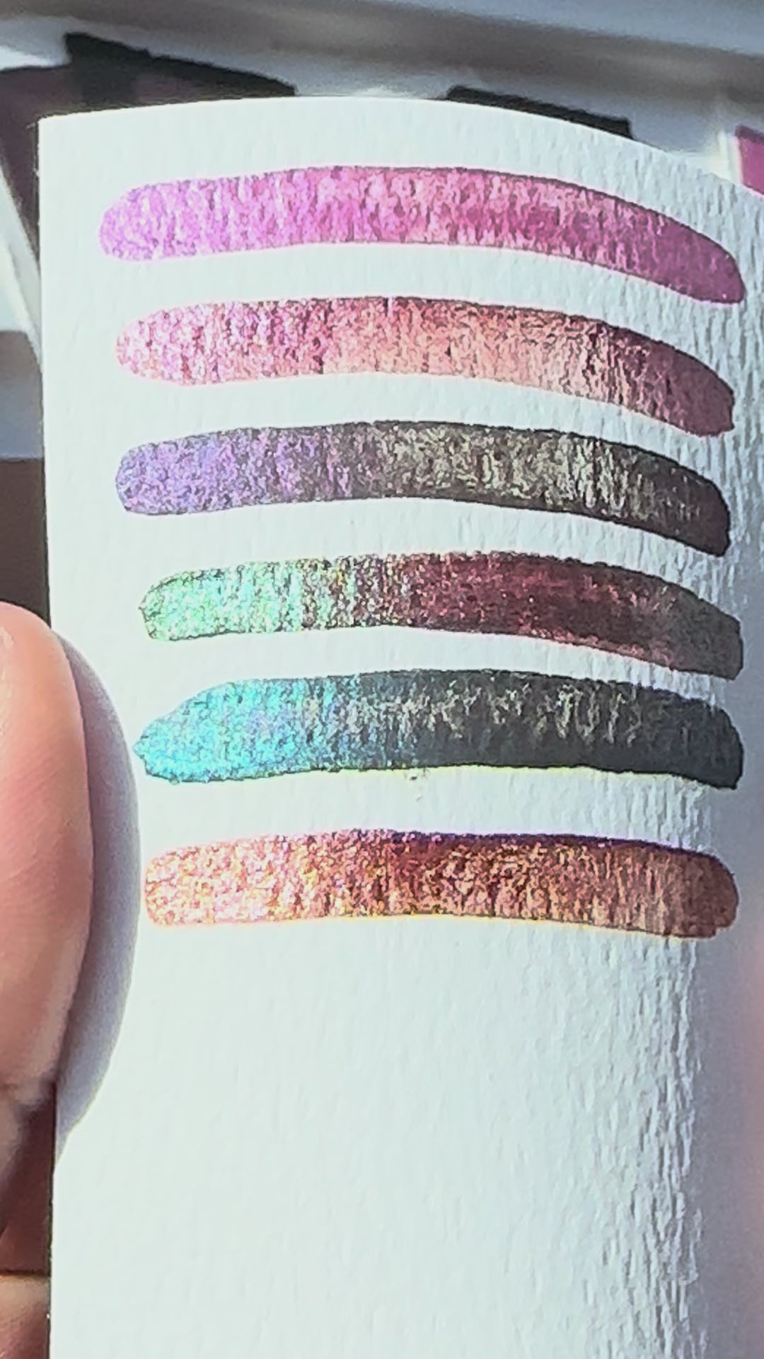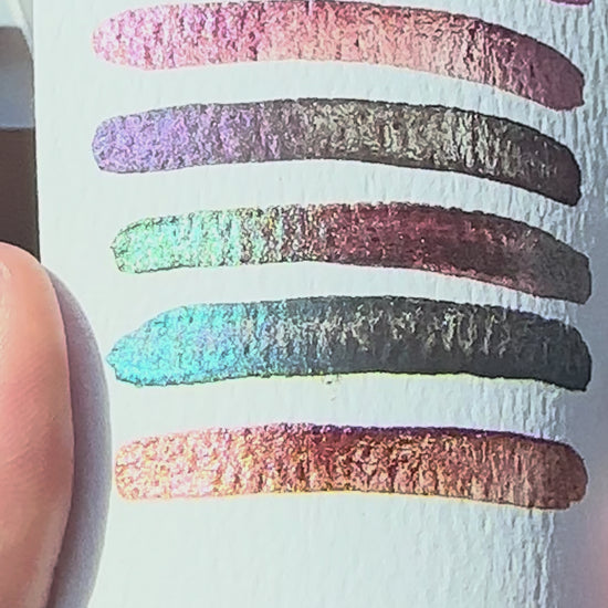 A set of six magical colors. Evolving, granulating and shimmering. It's like all the cool things about watercolor wrapped up in a single pan!