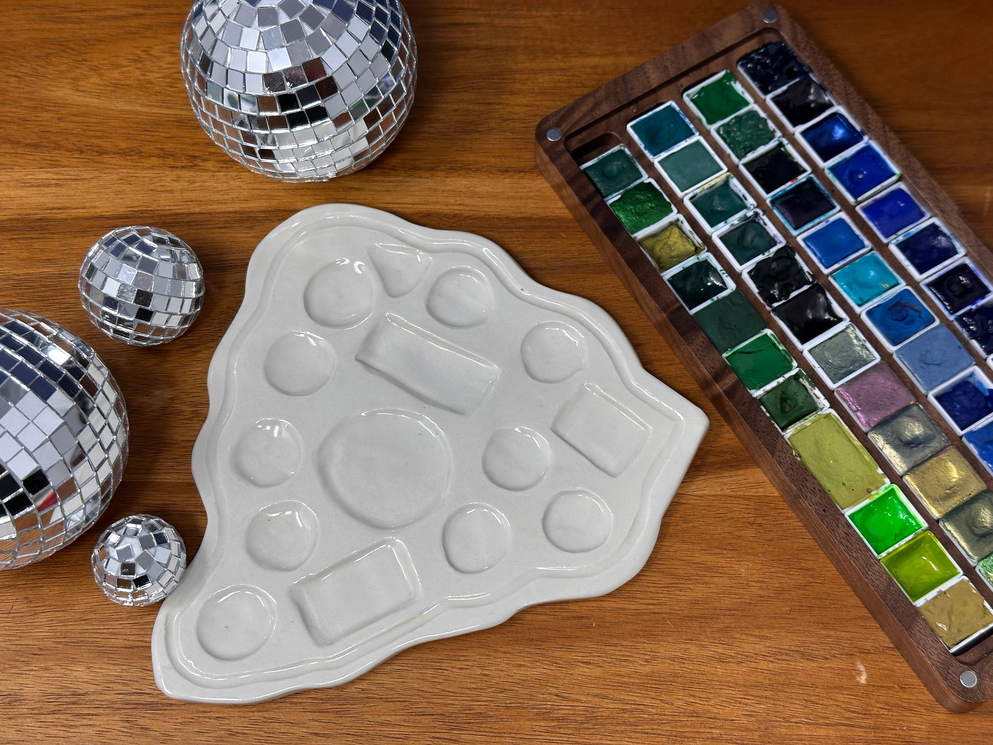 Your new paint buddy. Roughly the size of a banana, it’s compact enough to tuck into your art setup without hogging all the space, but roomy enough to handle a rainbow of mixes. Easy clean surface and the quirky cloud-like edges bring just the right amount of whimsy to get your creative juices flowing